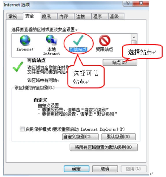 3、点击绿色的“受信任的站点”的图片,会看到如下图所示的界面: