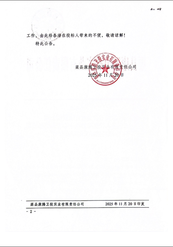 渠县康腾卫投实业有限责任公司关于终止渠县人民医院体检中心专业装修建设项目招标工作的公告