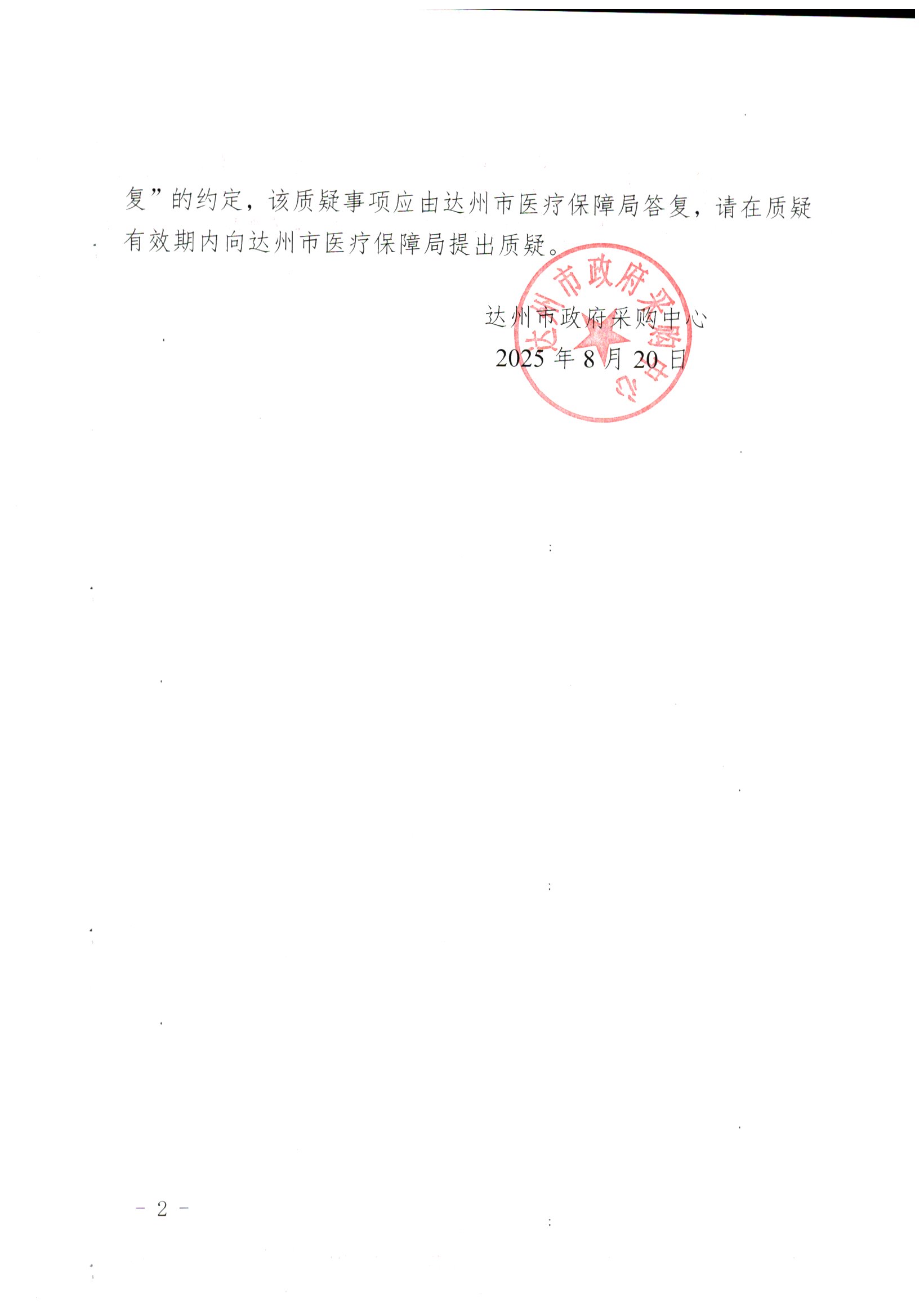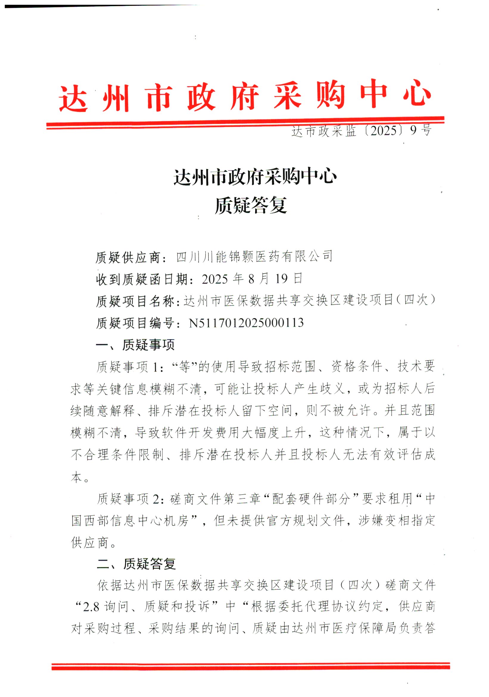 达州市医保数据共享交换区建设项目(四次)质疑答复