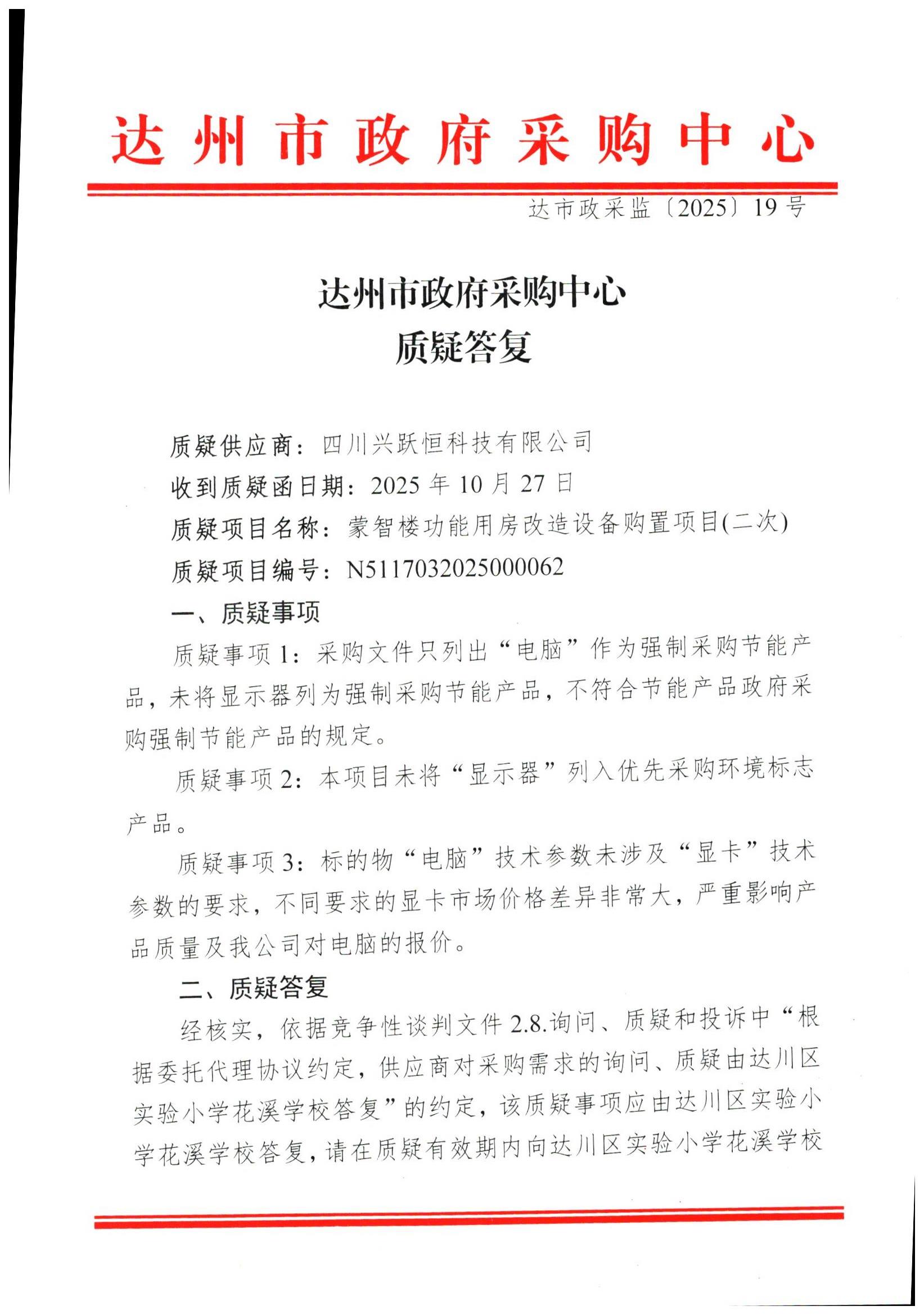 质疑答复