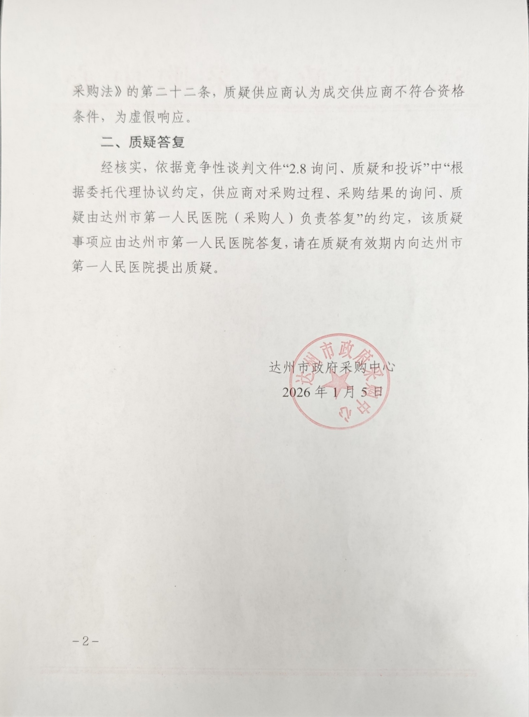 质疑答复